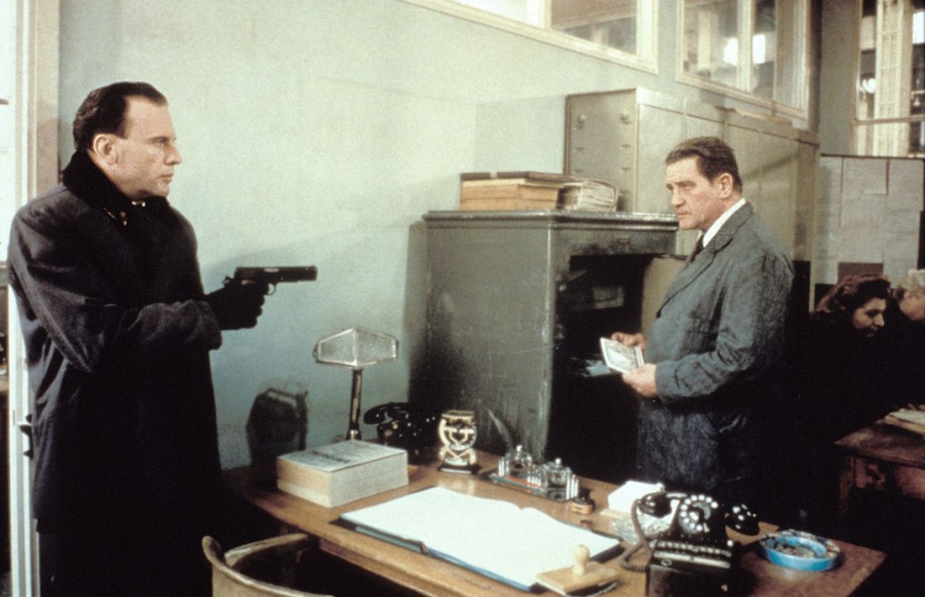 D’accord. Mais ou est la folie là-dedans? Dans le caractère obsessionnel qui confine à la démence de Buisson. Trintignant montre avec beaucoup d’habileté le dérangement de son personnage. Toujours froid voire glacial, loin des explosions – souvent brillantes- d’autres acteurs, il campe un psychopathe tranquille et d’autant plus effrayant. Buisson n’explose jamais ou presque. Parce qu’il se cache le plus souvent, ne se révélant que par instant quant il confie son goût pour Edith Piaf ou explique pourquoi il lit le Figaro. Ou quant il parle devant Borniche du sort qu’il réserve à l’homme qui l’a dénoncé. La voix off qui commente l’action précise que ce sera la seule confidence du truand.