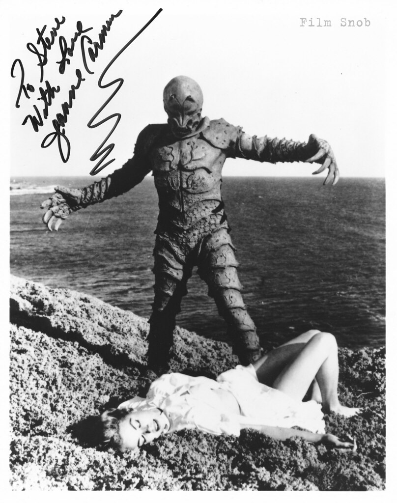 Actrice, pin up , modèle, familière des couvertures de magazines masculins des années 50/60. Un parcours qui serait presque banal s’il n’était pimenté par la pratique professionnelle du golf de la dame et surtout de sa fréquentation pour le moins assidue de la pègre. Elle aidait en effet à Las Vegas dans ses tricheries au jeu l’un des pontes de la Mafia de Chicago: Johnny Rosseli (Lequel était par ailleurs impliqué dans le complot contre Kennedy, mais ce n’est pas le sujet). Là ou Liz Renay se contentait de batifoler avec Mickey Cohen, Jeanne Carmen mettait si l’on peut dire la main à la pâte. Au point de risquer sa vie, Rosseli lui enjoignit même de quitter Vegas car Sam Giancana, boss absolu du crime d’alors, la menaçait. Elle survécut, joua dans nombreux films d’exploitation dont le plus connu reste « The monster of Piedras blancas » ainsi que dans de nombreuses séries télévisées dont le western « Have gun will travel »