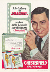 Comme il sera paraît-il bientôt interdit de montrer des fumeurs à l’écran. Avant que le temps de la liberté ne soit définitivement révolu, ces quelques réclames auxquelles se prêtaient les stars de Hollywood. Quand pétuner n’était pas encore un crime…
