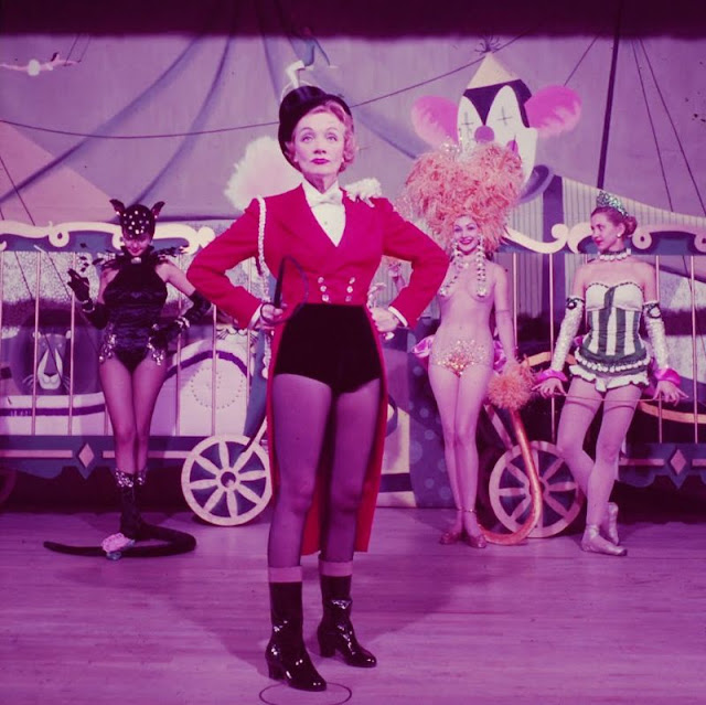 Deuxième partie: Marlène Dietrich. Images des concerts au Sahara hotel de Las Vegas. Oui, comme Mae West précédemment évoquée ici: A croire que l’endroit aimait à accueillir les stars des années 30..Avec en bonus l’effigie en carton de l’actrice qui faisait partie des ornements de la pochette du « SGT Pepper lonely hearts club band » des Beatles. Pour l’anecdote, les Fab four avaient également proposé à Mae West de figurer sur l’illustration susmentionnée. La dame, bien que se sentant flattée, refusa arguant du fait qu’elle ne se voyait pas au milieu d’un club de coeurs solitaires. L’Ange bleu n’eut pas ces préventions…
