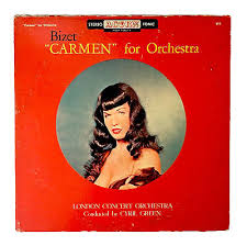 Mais au-delà de cette dimension musicale, il y avait aussi un aspect évidemment visuel. Les pochettes comptaient. Illustrées tantôt par des photos, tantôt par des dessins. Peu importe. Et cela allait de pair avec les pin ups – parfois danseuses comme Lily StCyr, dont l’image ornaient des vinyls au contenu souvent bien éloigné des entrechats ou des poses de ces dames. Voir la pochette de la « Carmen » de Bizet sur laquelle figure la reine des courbes Bettie Page.