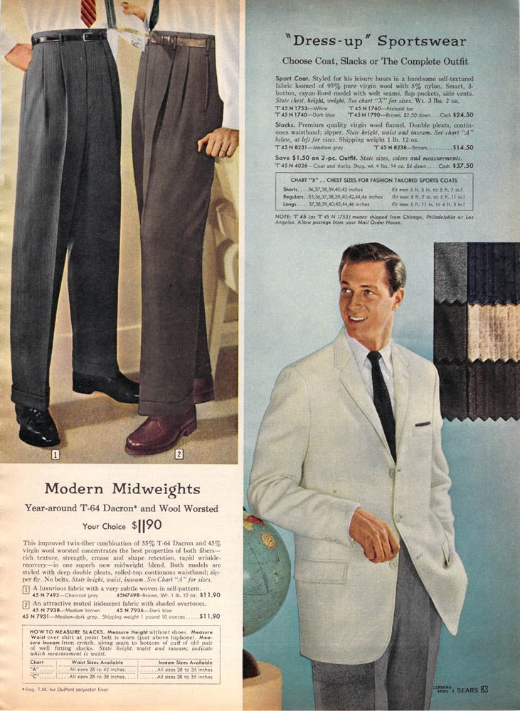 Mais les choses, les meilleures comme les pires, ont une fin. La fin des 50s sonna le glas – temporaire mais encore asse long- de la culotte ample, ainsi que le démontra le guide ultime en la matière Cary Grant avec son costume ajusté de « La mort aux trousses » Le pantalon à pince connaîtra cependant une résurrection à l’aube des années 80, notamment par les affreux Cold wave, mais ça c’est une autre histoire!
