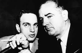 Il était juif et homosexuel et passa une bonne part de sa vie à pourchasser les juifs et les homosexuels. Il se fit connaître en envoyant à la chaise électrique les époux Rosenberg pour haute trahison. Seul le mari était coupable ( d’avoir livré aux russes des secrets qu’ils possédaient déjà) mais le jeune avocat Cohn tint à infliger aux deux le châtiment suprême. Sans doute pour ne pas séparer les familles, ce qui montrait qu’à un âge si tendre (23 ans!) le bavard appelé à devenir une vedette des médias cumulait les vertus du roi Salomon et de Noé sur son arche. Il embraya en devenant le brillant second de Joseph MacCarthy qu’il assista dans sa chasse aux communistes.