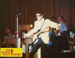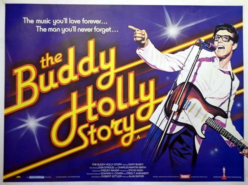 Et nous voila repartis en 1978! Avant d’en finir une bonne fois (Du moins pour le moment) avec l’année susmentionnée, je dois dire que c’est précisément durant ce morceau d’espace-temps que j’ai découvert l’existence du rocker dont traite le film chroniqué ici. C’était en regardant « Les visiteurs du mercredi » ou le film était préenté par Marc Menant (Que je salue au passage, non il ne me connait pas, mais l’intention est là!) Bon, il suffit des mes années moutard et venons en au vif du sujet. Vous l’aurez compris « The Buddy Holly story » appartient au genre du « Biopic », autrement dit de la biographie filmée. L’exercice semble à priori facile, certains pensant qu’il ne s’agit que de la mise en images d’une vie. En fait, et ce bien que cela ne soit pas complètement faux, c’est plus complexe. Peu importe que l’histoire soit ou non réelle, toute la difficulté qui se pose à celui qui la raconte est l’angle qu’il faudra choisir pour la rendre intéressante. De ce point de vue, les biopics souffrent de la paresse de nombreux réalisateurs ou/et scénaristes qui se contentent le plus souvent de suivre l’éternel canevas débuts difficiles/ascension/ excès/rédemption. Ou mort à la fin, autre option possible. Il suffit pour s’en convaincre de voir le travail récemment accompli avec Freddy Mercury ou Elton John.