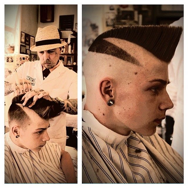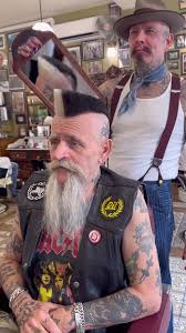 On les reconnaissait à leur jeans passés à la Javel, leurs Doc Martens montantes, leurs creepers, et leurs blousons de Base Ball (Non, on n’appelle pas ça un Teddy!, mai j’y reviendrais dans un autre article.) leurs perfectos constellés de badges, patches et pochoirs. Mais surtout, au milieu de ce vestiaire qui empruntait autant aux années 50 qu’aux punks (Voire aux skinheads) ce qui les distinguait, c’était leurs coupe de cheveux. A mi-chemin entre la crête et la « Quiff » (Nom anglais de la Pompadour, ce qu’on nomme de manière inappropriée en français la « banane ») une espèce de nageoire de requin surmontant un crâne aux côtés rasés. « Take a razor to your head… » comme chataient les Sharks sur leur album éponyme en 1983. Mais il y avait une logique là-dedans, le mouvement Psychobilly étant syncrétique, le look qui l’accompagnait devait l’être. Les psychos suscitaient tantôt l’amusement, tantôt l’inquiétude, ces garçons et parfois leur pendants féminins, pouvant parfois se montrer violents, en particulier sous l’empire de spiritueux. D’aucuns auraient pu croire que ce style excessif aurait du disparaître avec la décennie qui l’avait vu naître, les années 80. Or, à la surprise générale, non seulement le genre survécut contre vents et marées mais aussi…la coiffure! Preuve en est sa réinvention par les barbiers bataves de Schorem, maîtres de l’élégance capillaire alternative, avec leur modèle préféré l’inénarrable Pako, sorte de version chevelue et Rock’n’Roll d’Agécanonix.