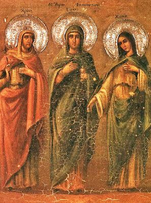 Célébrons aujourd’hui Agapé, Irène et Chionia, saintes et martyres de Thessalonique!