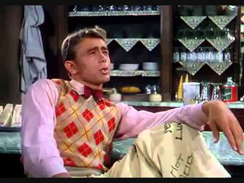 James Dean dans « Qui donc a vu ma belle? Has anybody seen my gal? », une des rares comédies de Douglas Sirk.Dean y joue un amateur de glaces fort exigeant. Qu’attendre d’autre d’un personnage qui porte un pull pareil?