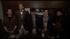 Et c’est là que les choses deviennent intéressantes. « American college » fait mieux que verser dans l’absurde, il se vautre dans la contemplation de la bêtise. Car le récit de cette guéguerre estudiantine est d’abord et surtout un portrait de la sottise. Certes, les conformistes BCBG tirés à quatre épingles de la fraternité Oméga sont odieux (Parce que conservateurs, Landis était et demeure un hippie impénitent) et les débraillés de la fraternité Delta sont sympathiques. Mais cela ne change rien. Les uns comme les autres pratiquent des rites débiles ( Initiation à caractère sadomasochiste chez les Oméga, beuveries et destructions chez les Delta) et s’en réjouissent forcément. La sympathie de Landis pour les crasseux (Qui ne le sont pas tant que ça vestimentairement parlant, mais bon..) a pour but de nous embarquer dans le récit et, peut-être aussi, de nous inciter à choisir notre camp. Et au milieu, il y a la figure de « Bluto » Blutarsky ( Que de plosives dans ce nom!) le chef des Delta interprété par le regretté John Belushi, personnage grossier et répugnant jusqu’à en être drôle. « Bluto » qui, à l’instar de ses compagnons de la Delta ne semble guère promis à un bel avenir. Et pourtant, lors du final sur l’air de « Que sont-ils devenus? », ce sont le gros père susmentionné et ses petits camarades qui s’en sortent le mieux. A la différence de leurs adversaires qui, eux, tournent mal.