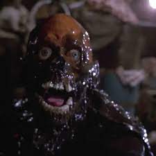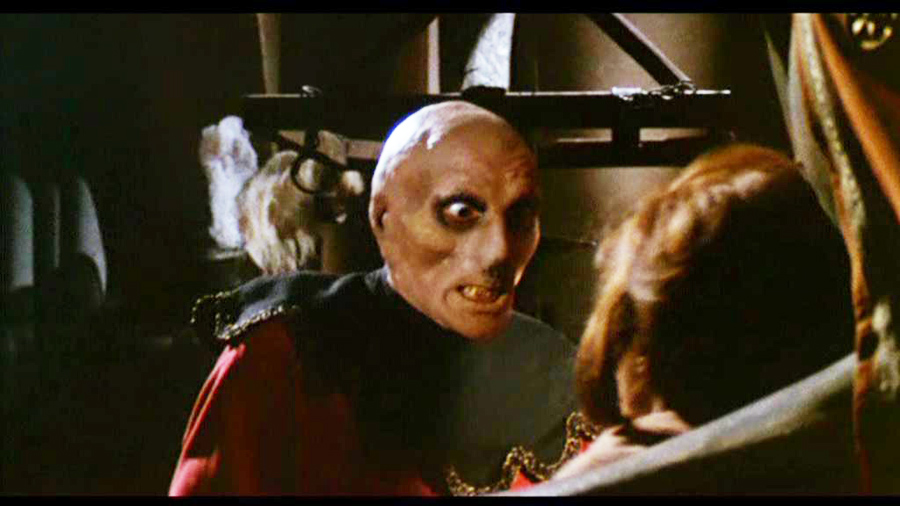 Il y a des écorchés qui lui ressemblent comme le malheureux de « La vierge de Nuremberg » ou le docteur Phibes. Présente sur les couvertures de romans populaires, les affiches de films ou les pochettes de disques, elle est partout et se marre franchement dans « Le retour des morts vivants »! Oui, la tête de mort est partout!
