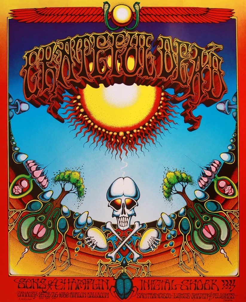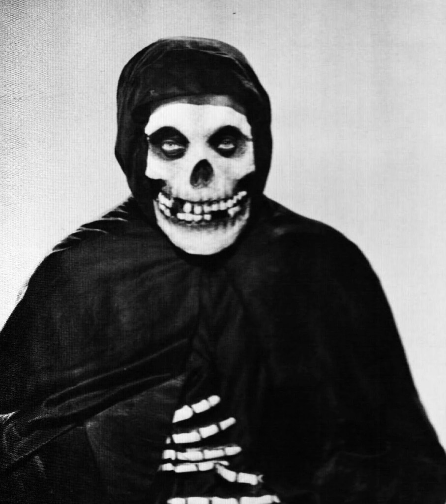 Tête de mort, suite. Masque pour le fantôme de l’opéra, allure du Crimson ghost, méchant de serial avant de devenir l’emblème des Misfits, célèbre groupe de Punk Rock. Elle est aussi par elle-même le symbole d’un autre groupe mythique, le bien nommé Grateful dead.