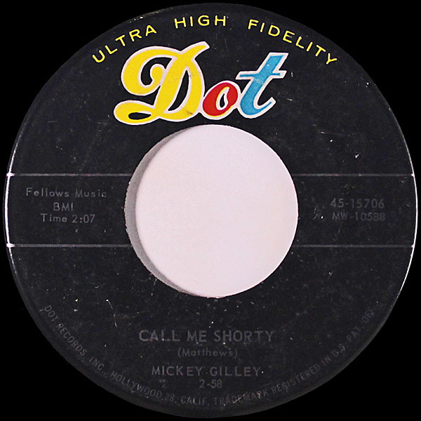 Le roi n’était pas son cousin mais le Killer, oui. Mickey Gilley était en effet le cousin de Jerry Lee Lewis, et jouait comme ce dernier du piano. Il se lança lui aussi dans le Rock’n’Roll alors en pleine explosion, gravant plusieurs faces mélangeant reprises et compositions originales. Le morceau le plus remarquable de cette période fut « Call me Shorty » publié en 1958 sur Dot, portrait d’un frimeur à bagouzes qu’on pourrait soupçonner de proxénétisme, rejoignant la tradition de cs Milords L’arsouille du pauvre essaimant dans la chanson populaire américaine depuis « Stagger Lee ». Hélas, cela ne permit pas à Mickey de casser la baraque. Il se rattrapa par la suite en versant dans la Country et en faisant danser Travolta avec un chapeau de cowboy, genre la fièvre du samedi soir chez les ploucs. Mais ça c’est une autre histoire!