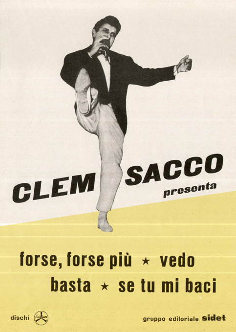 Dès lors qu’on évoque le Rock’n’Roll transalpin, le premier nom qui vient à l’esprit est évidemment celui de Adriano Celentano. Révélé par le film « La dolce vita », il partit sous les meilleurs auspices puis donna à la chanson italienne un paquet classiques, et se révéla parallèlement bon acteur au cinéma/ Mais quid de Clem Sacco?