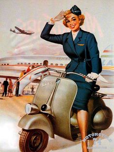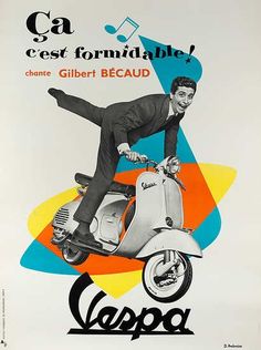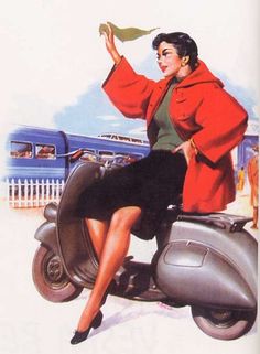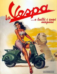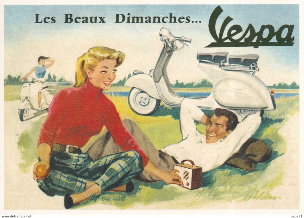 Aujourd’hui: La Vespa, symbole de l’Italie et de la France des années 50, de « Vacances romaines » des ouiquènedes et des vacances à la campagne, de la jeunesse, de la décontraction et de la passion latine, de la civilisation des loisirs naissante…Nostalgie!