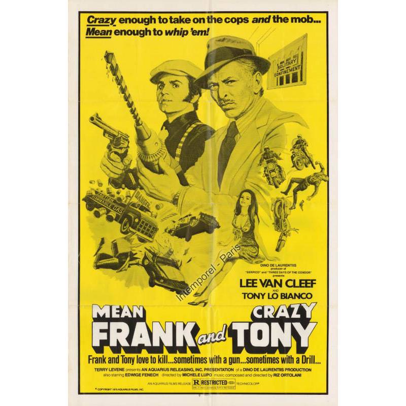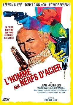 « L’homme aux nerfs d’acier » qui introduit ce court sujet sur Lee Van Cleef ne donne guère de matière au critique amateur. Polar solide qui se suit sans ennui ni passion, banal dans son point de départ autant que dans se développements, il n’y’ aurait guère plus à en dire ans ses interprètes. A commencer par le premier d’entre eux: Lee Van Cleef. Sergio Sollima qui le dirigea dans « Colorado » disait de lui qu’il était plus un physique qu’un acteur. Quant à l’intéressé lui-même, il disait qu’il n’avait que deux expressions à sa palette de jeu: « Avec chapeau et sans chapeau. » Mais quelle est la vérité dans ce concert de gentillesses? La vérité était en fait que Van Cleef était une figure. Un excellent second rôle de western et de films noirs avant de trouver la gloire en Italie grâce à Sergio Leone et aux westerns de ce dernier. Il devint ainsi un pilier du cinéma populaire transalpin et..du cinéma tout court. L’ennui est que cette célébrité tardive enferma l’acteur dans un emploi d’homme d’action monolithique (Il y a une contradiction, là!) comme c’est le cas ici… et ce qui laisse aux autres le soin de tout faire. L’atout charme Edwige Fenech, la française qui ne tourna presque jamais en France mais superstar de l’autre côté des Alpes. Jean Rochefort qui considérait ce film comme un bon moyen de nourrir ses chevaux (« Un de mes films foin et avoine » déclara-t-il un jour) et surtout Tony Lo Bianco – comédien injustement oublié- extraordinaire en aspirant caid ridicule, prétentieux, aux sapes d’un mauvais goût baroque mais non dépourvu de courage. Un bon contrepoint au granitique Van Cleef!