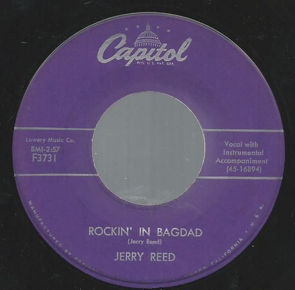 En 1958, Jerry Reed était un remarquable rock’n’roller, interprète et auteur compositeur recherché, (« Crazy legs » de Gene Vincent est on oeuvre) Il sortit en 1958 » Rockin’ in Baghdad » au moment même ou la dynastie Hachémite était renversée en Irak. Ah ça oui, ça rockait à Bagdad en 58!