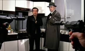 Suite à l’article sur l’espionnite dans le cinéma américain, il m’a semblé bon d’ajouter une chronique sur la comédie susmentionnée en cela qu’elle aborde ce thème. Mais sous un angle totalement différent, celui du rire et de la légèreté. Le comique consiste ici à opposer des professionnels du renseignement à un artiste fantasque. Ce dernier par son extravagance met à mal ces hommes habitués à la violence et à une certaine rigueur – et ce bien que ces « pros » soient eux aussi à leur manière assez étranges et, en un sens, enfantins avec les croche-pieds qu’ils ne cessent de projeter. Dans ce paradoxe, c’est l’élément féminin qui va contribuer à rééquilibrer – et à sauver le personnage joué par Pierre Richard- en dévoilant la supercherie dont l’homme qu’elle est chargée de surveiller est la victime. Pour la petite histoire, la robe portée par Mireille Darc devenue désormais iconique avait été conçue pour mettre en valeur les fesses de l’actrice, cette dernière étant plus callipyge que mammaire (Pas comme Noel, donc, Noel Mammaire) Plus sérieusement, dans le cadre du thème du viol des vies privées, le film a l’originalité de focaliser sur un individu qui ignore tout de la situation et provoque donc les réactions comiques de ceux qui l’espionnent, convaincus d’avoir affaire à l’un des leurs.