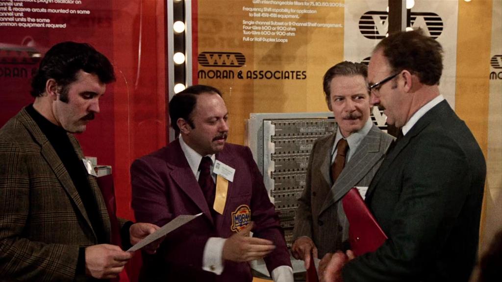 Micros, magnétos, caméras. Respirez, vous êtes sur écoute. Souriez, vous êtes filmés. La technologie qui inonda la planète durant les années 70 inspira forcément le cinéma, principalement policier. Les truands s’en servaient pour leurs mauvais coups, comme notre Bébel national dans « Le casse » de Henri Verneuil, les flics aussi mais pour la bonne cause comme Bébel dans « Peur sur la ville » de Henri Verneuil (On ne change pas une équipe qui gagne, c’est bien connu) Mais outre l’aspect utilitaire de la chose, ce qui retint l’attention du public fut les éventuels abus que pouvaient entraîner ce nouveaux moyens de mettre son nez dans l’appartement de madame Michu. Cela fut accentué par l’affaire du Watergate qui fit que plus personne ne regarda le plombier de la même façon. Plus sérieusement, l’angoisse devant un viol de la vie privée commandité par la raison d’état avec l’aide de nouvelles techniques, fantasmée ou non, fut au centre de nombreux thrillers de l’époque.
