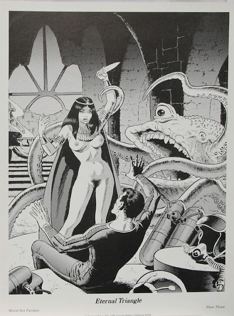J’ai déjà abordé Wallace Wood lors de l’article consacré aux E.C Comics pendant les années 50. Célèbre pour avoir à cette époque pour avoir redéfini la science fiction dessinée et ce avec une dose d’érotisme – suggestif, époque oblige. Néanmoins, Wood poursuivit sa carrière bien après la fin de la firme victime de la censure et il est intéressant de constater à ce sujet que l’évolution de l’artiste accompagne celle des moeurs. Plus osé lorsqu’il travaille pour Playboy puis pour l’armée américaine avec « Sally Forth » pendant les années 60, carrément grivois, à la limite du porno lors de la décennie suivante dans des publications beaucoup moins reluisantes dont les titres parlent d’eux-mêmes « Screw » « Gang bang » etc (Les anglicistes comprendront!) Parodiant Disney ou Star wars au passage. Quoiqu’il en soit, voici un tour d’horizon de la part la plus pimentée de la carrière de l’illustrateur!
