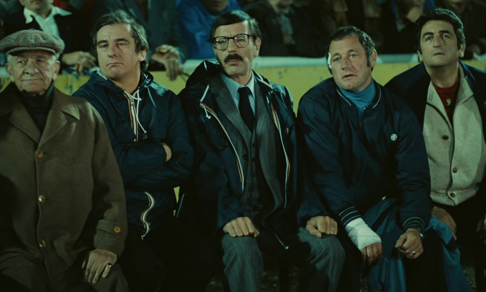 « Coup de tête », versant lumineux donc puisque cet homme à la fois sportif et ouvrier rejeté par tous qui connaît un retour en grâce non par le sport mais par ceux qui l’ont rejeté. Malgré la condition sociale du héros, il ne faut cependant pas voir le film comme une énième dénonciation de « L’opium du peuple » Certes, il y a la réplique, parmi les plus célébrées du film : » J’entretiens onze imbéciles pour en calmer cinq cent » dite par Jean Bouise qui joue le patron de l’usine et de l’équipe de Foot. Non, il ne s’agit pas ici d’une analyse marxiste, ni même d’une histoire de bouc émissaire, et ce en dépit des apparences.