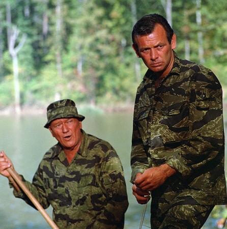 Avant d’être une oeuvre de propagande, « Les bérets verts » sont un film d’action qui respecte le contrat avec son public. Et de ce point de vue c’est une réussite qui de surcroît n’a rien de suranné, se permettant une cruauté inédite dans un John Wayne (Et une dose de cynisme, que l’on retrouvera l’année suivante dans le western « Cent dollars pour un shèriff ») Et puis il y a un plaisir. Un plaisir de cinéphile avec ce festival de « gueules » du cinéma hollywoodien, Raymond St Jacques, Luke Askew, George Takei (Débauché de « Star Trek ») Jack Soo et Aldo Ray. John Wayne savait choisir ses partenaires, dan ce film là peut-être plus que dans d’autres. D’accord, le revirement du journaliste de gauche faux cul joué par David Janssen passe mal et le soleil qui se lève à l’ouest, ça passe mal, mais bon…Et puis il y cette dernière scène ou John Wayne prend sous son aile un jeune vietnamien et s’interroge sur le sens de cette guerre qu’il mène. Après tout, ce n’était peut-être pas si simpliste….