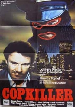 A priori, autant d’éléments disparates ainsi mélangés semblent une mixture improbable et probablement indigeste. En fait, il n’en n’est rien. Original et riche en rebondissements jusqu’à une conclusion inattendue, « Copkiller » est un OVNI au meilleur sens du terme puisqu’il surprend et sort franchement du lot du cinéma italien d’alors perdu dans les imitations de succès du moment (Mad Max, Conan etc). Le metteur en scène tire par ailleurs très bien parti de ses interprètes, dont les origines diverses renforcent le cachet très particulier du métrage. Le charisme de Harvey Keitel (Qui semble répéter son rôle du « Bad lieutenant » qu’il jouera quelques années plus tard) , l’intelligence et la sensibilité de Nicole Garcia, le métier de Leonard Mann, enfin John Lydon qui se révèle un excellent comédien et donne à regretter qu’il n’ait pas poursuivi dans cette voie. Il se met parfaitement dans la peau de ce personnage d’héritier énigmatique à la fois pervers et candide…ou pas!