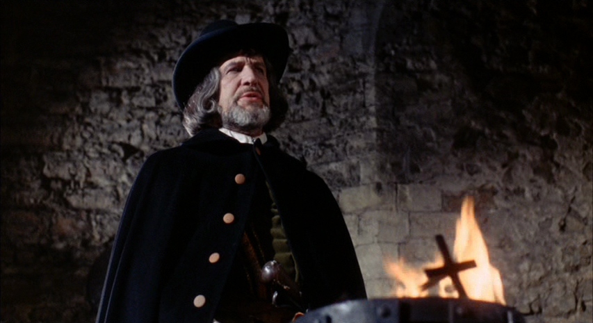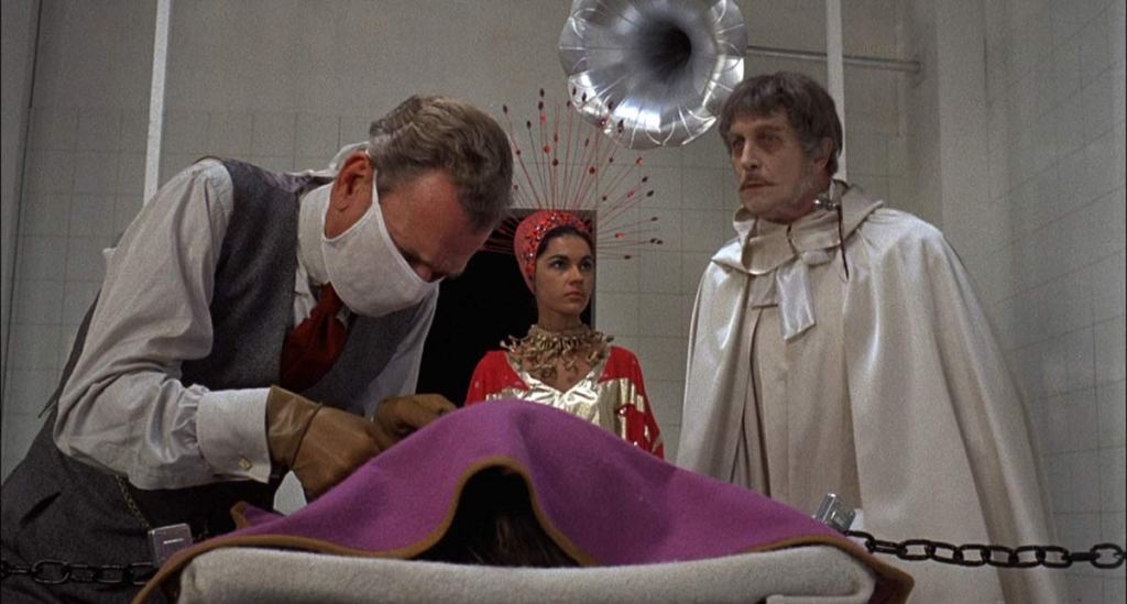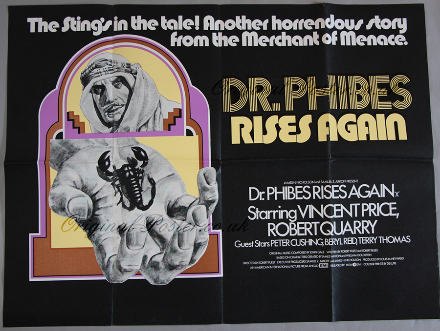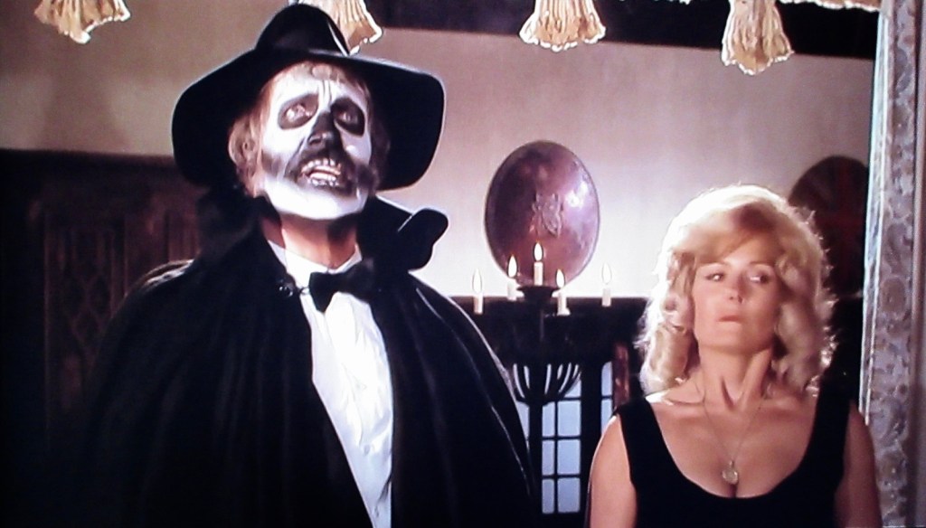 Pourtant, ce n’étaient que quelques gouttes d’eau dans un océan d’une joyeuse diversité. Le grand tournant eut lieu en 1960 quand Roger Corman entreprit de tourner des films gothiques, suite aux triomphes remportés par les films anglais de la Hammer ou de Mario Bava en Italie. Inspiré par Edgar Poe, le quasi-inventeur du fantastique américain, Corman tourna ainsi une série de films souvent très éloignés du matériau d’origine et mettant en vedette Vincent Price. « La chute de la maison Usher » en donna le départ. En regard des succès répétés de l’entreprise, Vincent Price reçut de nombreuses propositions en rapport avec le fantastique, certaines venant parfois hors des Etats-unis. Et c’est là que j’en viens au sujet de cet article, la part très conséquente de la carrière de Vincent Price qui se déroula au Royaume uni. Sans doute le tournage du « Masque de la mort rouge » en 1964 à Londres y fut-il pour quelque chose. Toujours est-il que Price enquilla de nombreux films anglais principalement depuis la fin des années 60 jusqu’au milieu des années 70. Tour à tour figure sinistre et répressive dans « Le grand inquisiteur » ou « La terreur des banshee », défiguré vengeur dans « L’abominable docteur Phibes » et sa suite. Comédien shakespearien vindicatif dans « Théâtre de sang », scientifique jouant avec le feu (Enfin, plutôt l’acide en l’occurrence!) dans « Lâchez les monstres » ou acteur de films d’horreur (Tiens, tiens!) victime d’une vengeance dans « Madhouse »