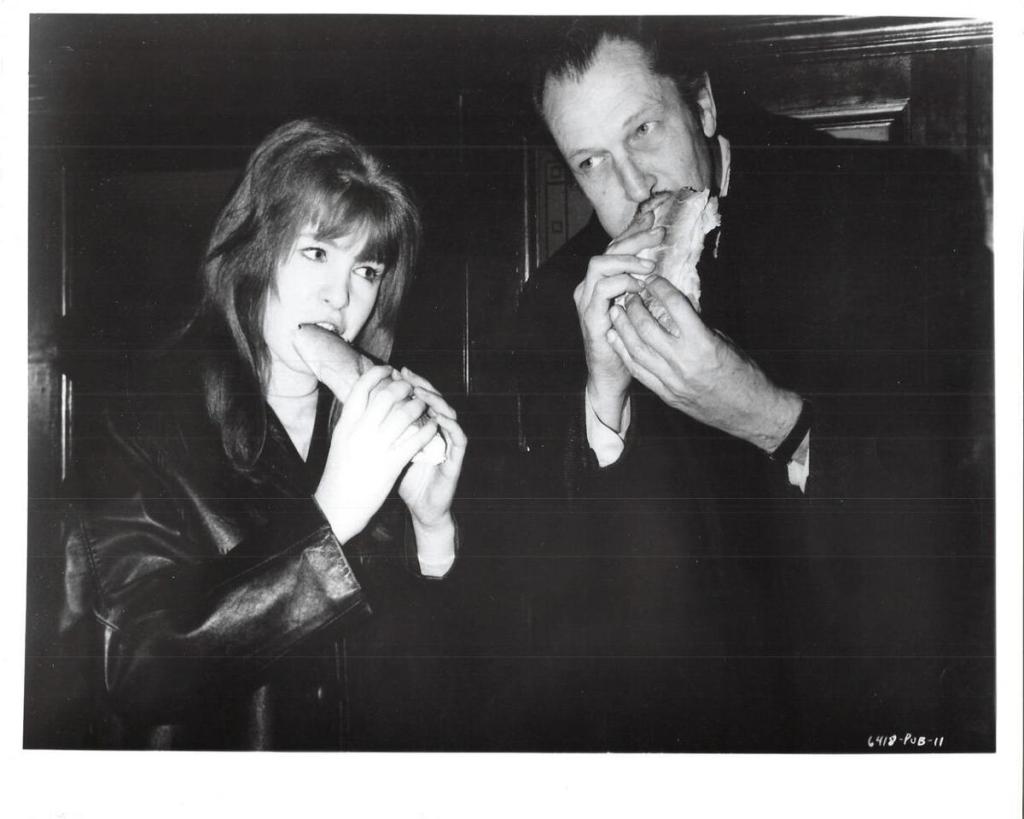 Vincent Price en compagnie de sa partenaire du « Masque de la mort rouge » Jane Asher, par ailleurs petite de Paul Mac Cartney.
