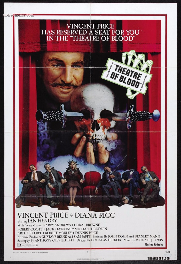 « Théâtre de sang/Theatre of blood » de Douglas Hickock (1973) qui réunit Diana Rigg et Ian Hendry, deux acteurs passés par « Chapeau melon et botte de cuir »
