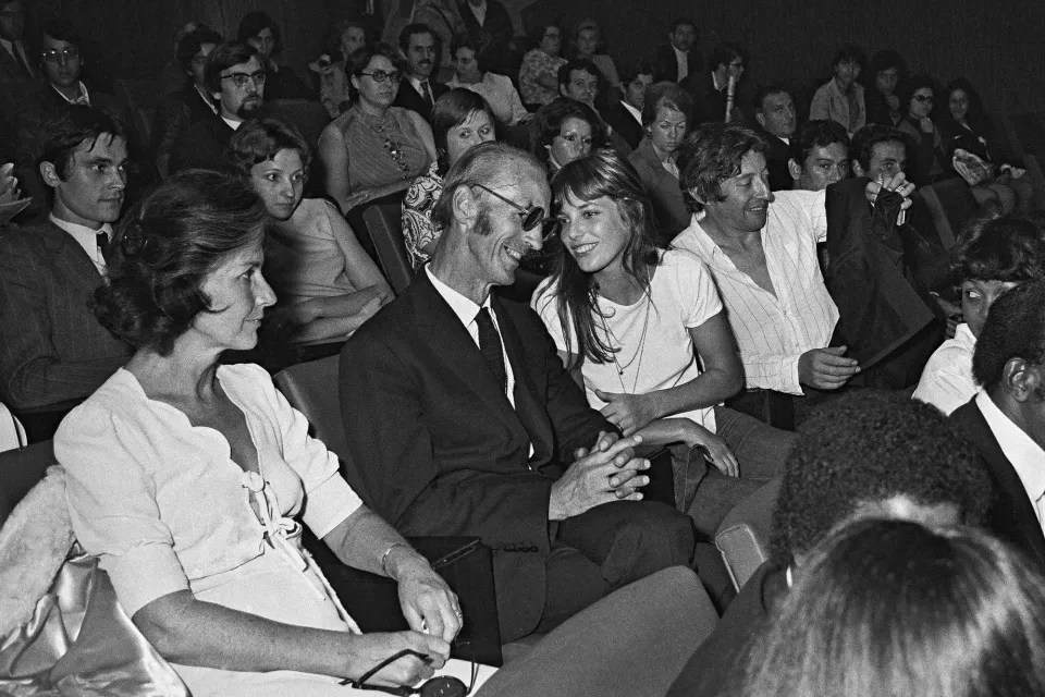 Un jeune Jean Philippe Smet comme à l’affût derrière Simone Signoret.