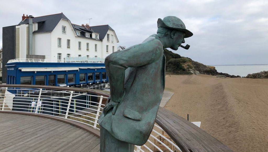 Statue de Jacques Tati à Saint Nazaire ou furent tournées « Les vacances de monsieur Hulot »