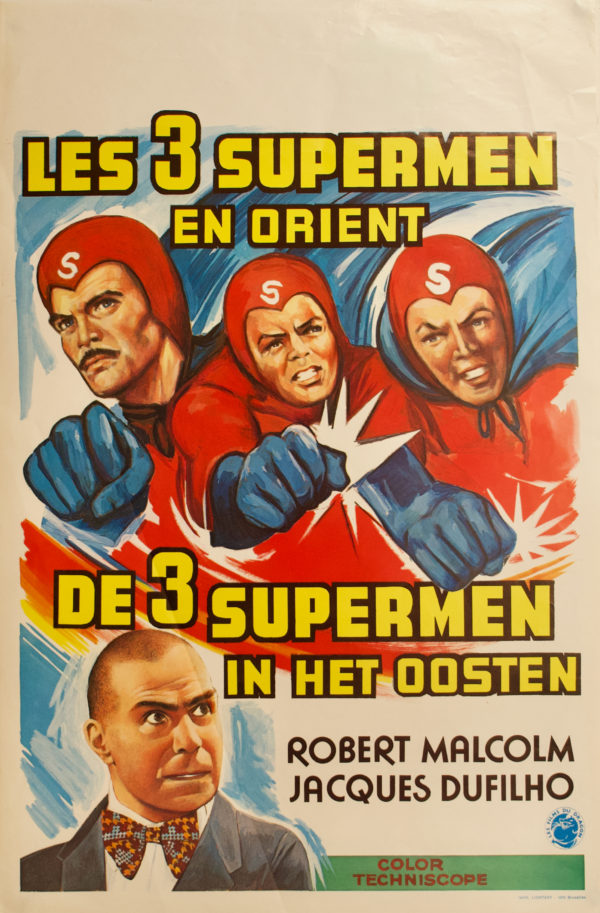 « Trois supermen en Orient » est un mélange de deux genres, dont l’un particulièrement boiteux: le film de super héros transalpin. Pas de super vilains comme dans le remarquable « Danger Diabolik » de Mario Bava. Non de super héros dédiés au bien qui ne tentent pas cambrioler le FISC. L’ennui est que là ou les italiens réussirent souvent avec bonheur les histoires de personnages maléfiques, il en alla tout autrement des « gentils », fréquemment grotesques. Comme ces trois surhommes qui ne le deviennent qu’à la grâce d’un très seyant costume rouge et noir avec slip porté par dessus le pantalon. Eh oui, sans cela, les malheureux héros en prennent plein la poire, notamment par Lo Lieh (Prononcez Loli, c’est dit!) qui fut, il faut le rappeler, la première star du Kung fu à s’exporter, peu avant Bruce Lee. Lo Lieh qu va faire le lien avec le film suivant chroniqué ici. Mais n’anticipons pas. Sinon, foin des digressions, ces « Trois supermen… » faisaient partie d’une longue série dont le premier opus fut « Les trois fantastiques supermen » réalisé par Gianfranco Parolini en 1967 avec Brad Harris, ancien acteur de Péplum qui tentait là de se reconvertir.