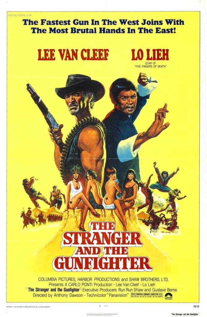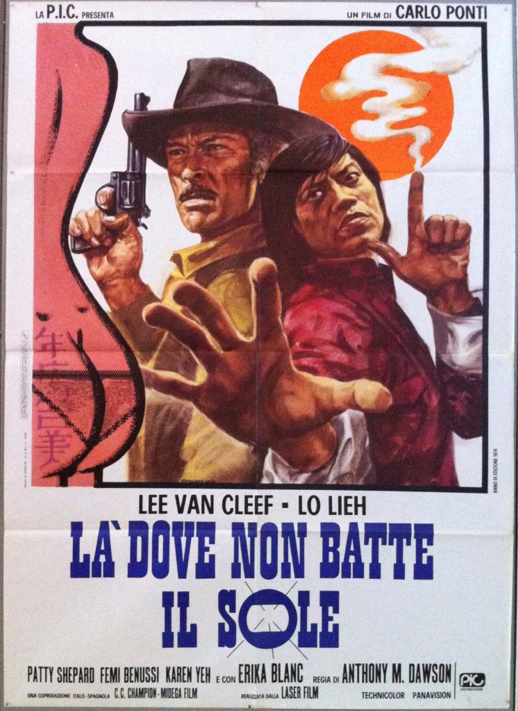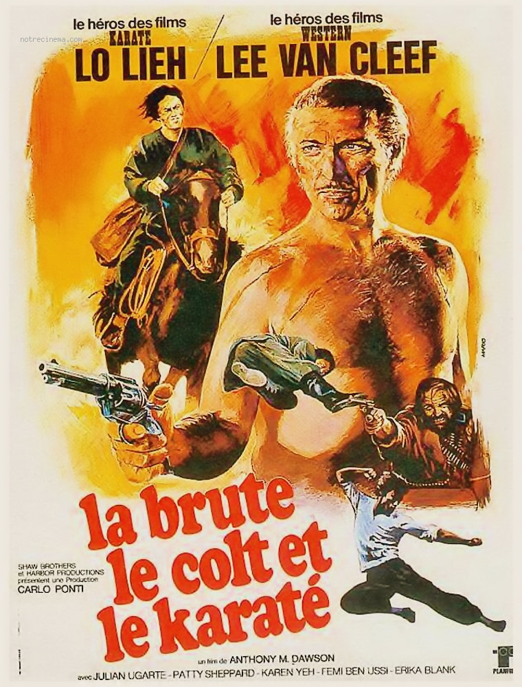 Revoilà Lo Lieh. Et le vieil habitué de l’Ouest italien, Lee Van Cleef. Lee et Lo Lieh, c’est-y pas mimi? Non? Bon, continuons. Alors là encore, l’apport des arts martiaux ne change pas grand chose à une recette usée à force d’être éprouvée – le trésor à récupérer en l’occurrence. Reste l’idée de la carte tatouée sur un postérieur est amusante ( Sans doute copiée par Kevin Costner dans « Waterworld » vingt ans plus tard, en moins drôle, il v sans dire!) , la présence d’Erika Blanc – une des rares femmes à avoir fait carrière dans le Western- et le charme que le film a pris avec le temps. Nostalgie…