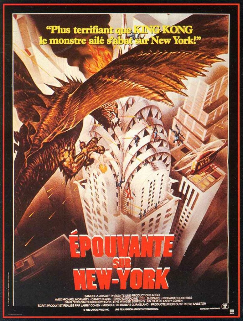 Les sorties successives de « King Kong » puis des » dents de la mer » ravivèrent l’intérêt du public pour les bestioles géantes, créant un nouveau courant qui perdura jusqu’au début des années 80. Ce fut en 1982 que cette tendance connut son apogée avec les sorties françaises, représentée par ces classiques du cinéma post-moderne « L’incroyable alligator » de Lewis Teague et « Epouvante sur New York » de Larry Cohen (Pas de parenté avec l’immonde Patrick Cohen) Pas plus que les autres garçons de mon âge je n’avais le droit de voir ces films aux affiches d’un définitif « Interdit au moins de treize ans » Ce qui ne nous empêchait pas de nous rattraper le samedi après-midi devant « Temps X », l’émission culte des jumeaux du Diable Bogdanoff. En effet ces derniers devaient penser à leur audience autant qu’aux frustrations des pré-adolescents qui constituaient leur public pour servir aux chères têtes blondes des scènes dégueulasses ou/et violentes sans déranger un instant les instances de l’audiovisuel pourtant sourcilleux d’alors.
