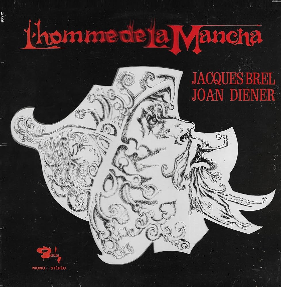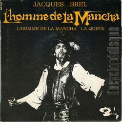 Parallèlement à son confrère Ferré et aux rockers Dick et Eddy, Jacques Brel se montra lui aussi sensible aux charmes de la culture anglo-saxonne. Mais de manière fort différente. Là ou les précités empruntèrent à la Pop, Brel (qui ne se souciait pas des modes) se tourna vers un tout autre genre: la comédie musicale. Pas n’importe laquelle: « Man of La Mancha » inspirée par « Don Quichotte » de Cervantès et crée par Dala Wasseman (Livret) Joe Darion (Paroles) et Mitch Leigh (Musique) Déjà fasciné à l’origine par le mythe de Don Quichotte, Brel fut transporté par cette adaptation scénique à laquelle il assista au Carnegie Hall à New York en 1967. Au point d’en acheter les droits.