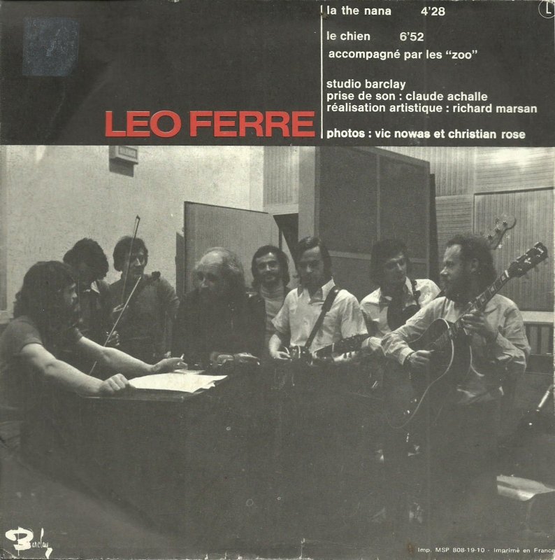 Au début des années 70, Léo décida d’aller plus loin, reniant ses mélodies, se plongeant parfois dans l’hermétisme mais aussi adoptant des sonorités électriques jusque là inédites chez lui. Pour ce faire il eut lui aussi recours… aux Zoo qui l’accompagnèrent le temps de deux albums. Que dire? Ironiquement, nombre des chansons soutenues par les nantais sont en fait du Léo Ferré classique avec un peu d’électricité dedans. Cela fut une parenthèse dans l’oeuvre de Léo qui poursuivit son chemin sur des terrains moins accidentés. Quant aux Zoo, ils disparurent, sans doute morts d’avoir joué dans l’ombre des vedettes.