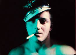 Toutefois, l’uniforme du motard fit l’objet d’intérêts autres que parodiques. Fétichistes, par exemple, de la part du cinéaste d’avant-garde et homosexuel tendance sadomasochiste Kenneth Anger. Ce qui donna le film « Scorpio rising » Anger, qui ne pouvait qu’éprouver de la fascination pour ces beaux garçons si bien habillés (Un clin d’oeil à Eddy Mitchell en passant) en trouva justement un qui accepta de se prêter à ses expérimentations visuelles. Il s’agissait d’un certain Richard McCauley qui se faisait appeler Bruce Byron en référence à James Dean dont le deuxième prénom était Byron. Ce qui permettrait plus tard aux exégèses de faire un lien avec le célèbre poète anglais.Bruce Byron n’en n’avait sans doute jamais entendu parlé, ses lectures se limitant aux bandes dessinées. Quant au choix de son pseudonyme, il s’expliquait par son admiration pour James Dean, sa deuxième idole après Marlon Brando (Décidément, pas moyen d’y échapper) Byron se laissa filmer lors d’une fête entre mais, lors d’une course de moto et dans diverses poses dans son appartement. A noter que la connotation gay de la chose fut ajoutée par Anger lui-même par sa manière de mettre en valeur son modèle. Ce dernier pour sa part, ainsi que les hommes qui l’entouraient, était marié et n’appartenait pas à la paroisse d’Anger.