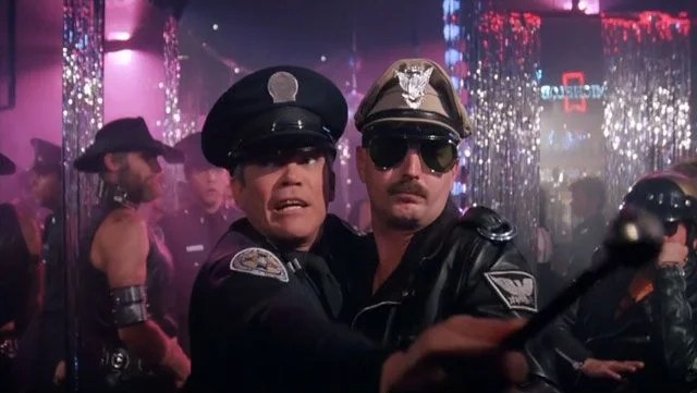 Une enquête c’est un peu un voyage qui emmène le policier dans des lieux et milieux divers et variés, parfois surprenants, parfois sordides. Le travail de Police cependant concerne souvent les marges de la société, les couches les plus pauvres de la population ou se recrutent souvent les criminels et les endroits susceptibles d’abriter des individus suspects aux yeux de la société. En un temps ou l’homosexualité même libérée demeurait mal vue, il n’était pas rares que la grande maison s’intéresse pour des motifs plus ou moins nobles aux lieux de rencontre gays. Et pas forcément la Mondaine. Le cinéma refléta cette réalité au point d’en faire un passage sinon obligé du moins fréquent. La descente ou la visite d’un bar peuplé d’homosexuels de préférence voyants (Allant de la folle au cuir) ajoutait du piment au récit et passe maintenant pour un cliché redondant, ou se regarde avec nostalgie. C’est selon.