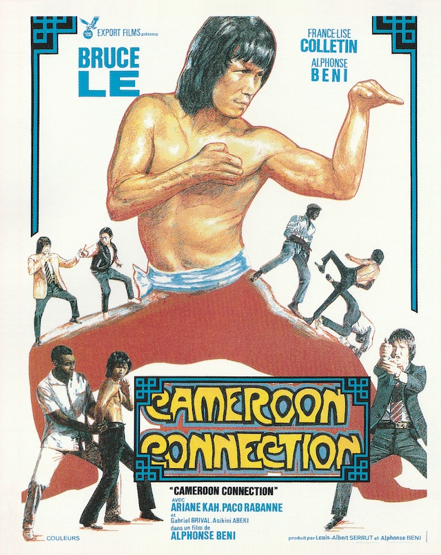 J’ai déjà évoqué son « Cameroun connection » (1985) qui se déroule en partie à Paris et nous offre LA rencontre au sommet Paco Rabanne/ Alphonse Beni, sans compter la présence de l’autre grande attraction de l’affiche Bruce Le, clone de Bruce Lee, comme il se doit. Car oui, Beni avait du aimer « Opération dragon » ou un asiatique s’alliait avec un noir ( En l’espèce Jim Kelly) et avait de toute évidence emprunté cette figure pour plaire au jeune public friand de divertissements dont la cinématographie locale est avare.