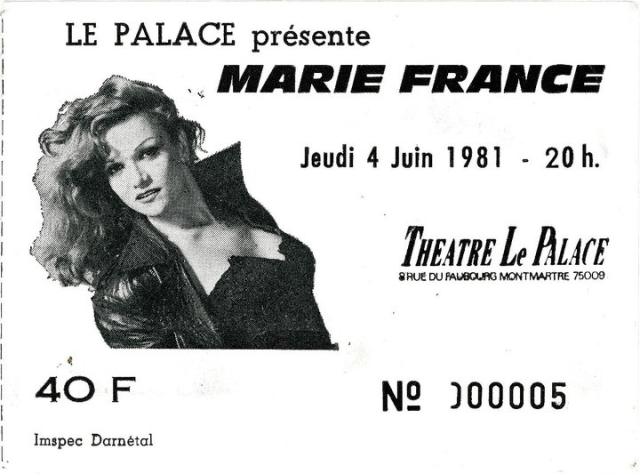 Il n’était pas chose aisée d’écrire un article sur Marie France, tant le personnage est incontournable. Ce terme si galvaudé s’applique pourtant parfaitement à la chanteuse pied noire et transgenre qui évolua dans tant de cercle différent. Chanteuse souvent, modèle parfois, actrice à l’occasion. Reine des nuits parisiennes aux Bains douches, égéries du duo photographique Pierre et Gilles, membre des Gazolines, métastase du FHAR ou Front homosexuel d’action révolutionnaire de Guy Hocquengem et Jean Louis Bory. Personnalité de la chanson française et pourtant si proche du Rock. Tour à tour Punk, Garage et Rock’n’Roll, elle partiqua tout sans se perdre en rien. Elle fut une évocatrice plutôt qu’une imitatrice de Bardot, Marilyn et Marlene Dietrich.