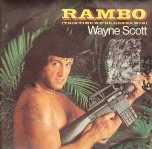 Sorti en 1985, « Rambo II, la mission/ First blood part II, the mission » deuxième volets des aventures de l’ancien combattant cabossé devenu super-héros de l’Amérique de Reagan suscita de nombreux avatars. Outre les films qui le plagiaient, il y eut également une série animée paraît-il désastreuse ainsi qu’une chanson intitulée « Rambo »-ça tombait bien- chantée par un sosie de Sylvester Stallone connu sous le nom de Wayne Scott (Il s’appelait en fait Joe Gentissi) Ce dernier eut droit en France aux honneurs du JT d’Antenne 2 face, si mes souvenirs sont bons, à Noel Mamère et même au plateau de « Demain c’est dimanche » émissions de variétés présentée par les Charlots. Là, c’était la consécration. Ce classique post-moderne était composé et produit par Henri Belolo, déja découvreur du collectif de génie « Village people ». On notera à ce propos les plans insistants sur les pectoraux du pseudo-Stallone qui feraient hurler au virilisme à l’heure ou notre président se prend pour Rocky. Rassure toi Sandrine, les images de ces puscles saillants et huileux ont aussi plu aux gays!