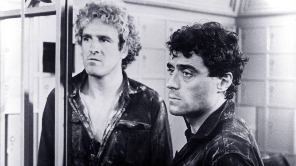 Christopher Malcolm et Ian McShane ( à droite dans le rôle d’Albert) dans le téléfilm britannique « Sewers of gold/Un casse en or » (1979) de Francis Megahy.