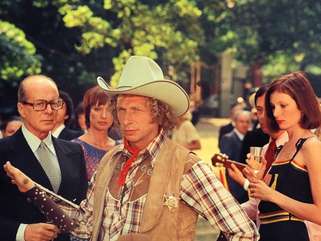 Le cowboy! Une figure qui a vite fasciné le monde hors des états-unis au point de servir à tout! Tour à tour outil de mise en scène pour une pochette de disque, objet de satire chez Marco Ferreri ou pour Jean Amadou à la télévision, parodie nunuche pour Fernand Reynaud, de figure exotique et plus ou moins romantique pour Jacques Brel, Alain Delon ou Luis Mariano, ou encore d’évocation décalée chez Francis Weber ou Pierre Richard en costume d’opérette se trouve aux prises avec un indien de grand magasin. Comme on le voit, le France ne fut pas en reste dès qu’il s’est agi d’aborder le mythe, pour le meilleur et surtout pour le pire!