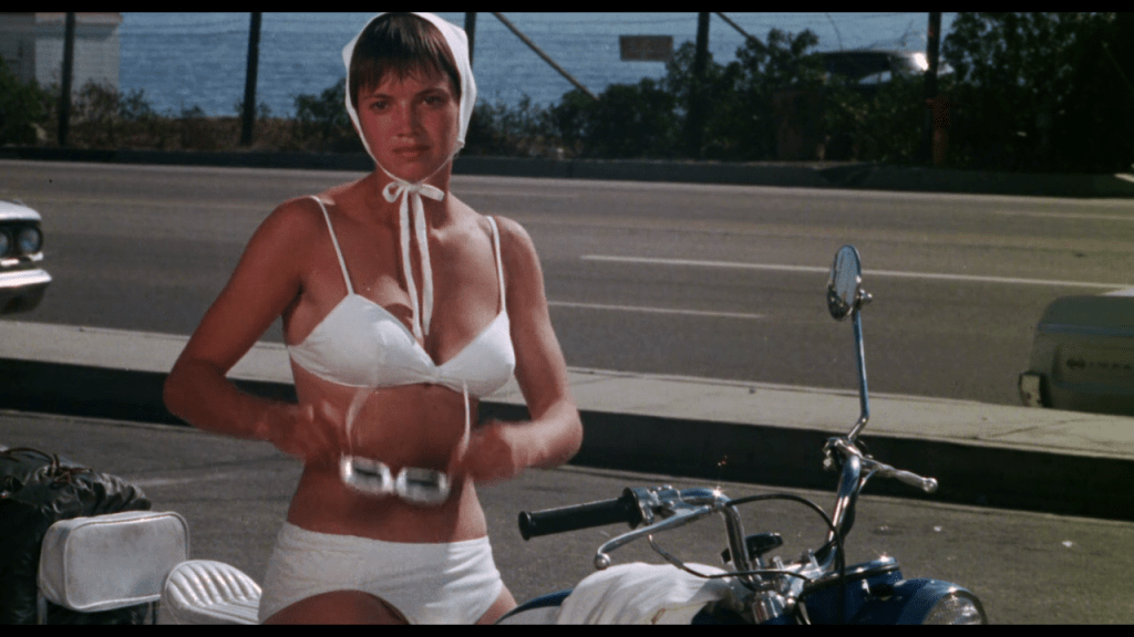 « Vixen » (1968) de l’iconique Russ meyer, n’est pas tout à fait un film de motards, toutefois, un de ses personnages est à l’évidence un motocycliste 1% (Ou hors la loi, si vous préférez!) Et regardez (Voir photo après l’affiche!) son regard lubrique sur l’appétissante Erica Gavin!