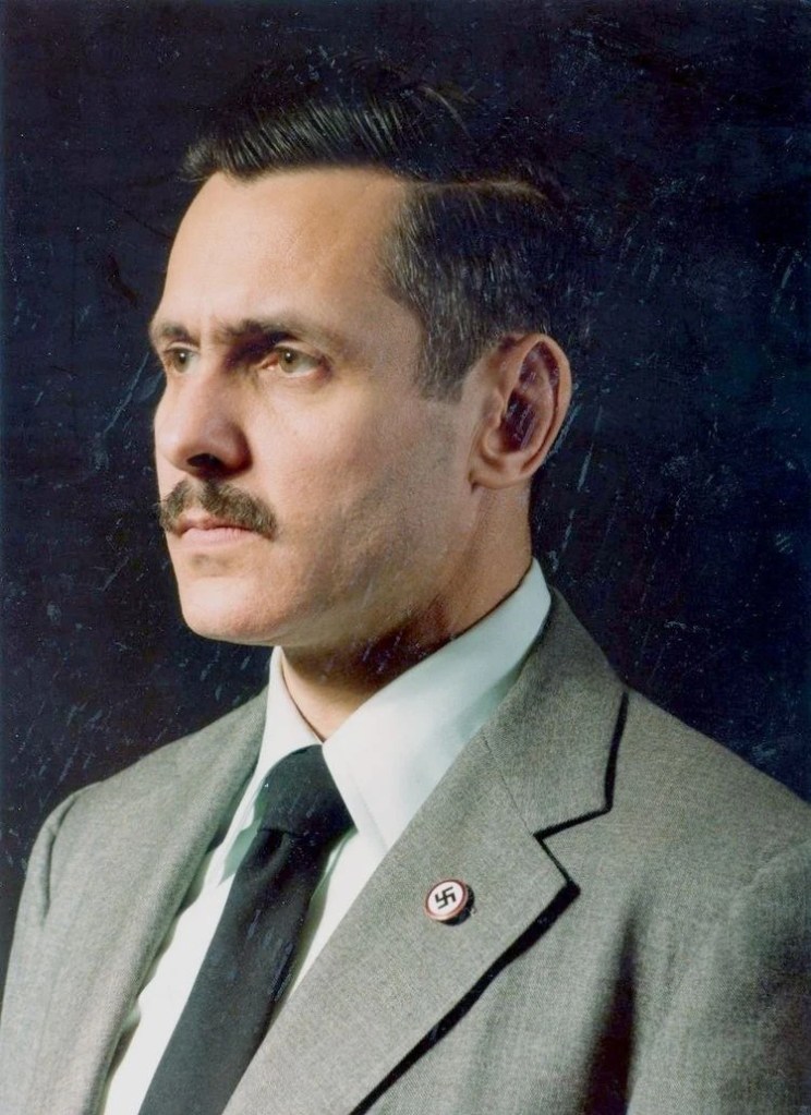 Le Nazisme et l’Amérique, une histoire qui prend racine chez certains immigrants allemands séduits par les bruits de bottes venus de leur mère-patrie. Parmi eux, il y eut Fritz Kuhn qui fonda le pendant américain du NSDAP, le Bund (Ironiquement homonyme du Bund des travailleurs juifs d’Ukraine datant de la révolution bolchevique!) Il connut un certain succès auprès des américains de souche germanique, provoqua de nombreux incidents, affronta l’opposition d’une partie non négligeable des américains, et ce dans strates aussi différentes que la Mafia et le FBI. Eh oui, ce bon vieux Edgar Hoover ne prisait guère ces émules de la SA, si peu qu’il en interdit l’existence au début de la guerre. Comme quoi, nul ne saurait être entièrement mauvais Cela au demeurant n’empêcha pas Hoover de lister au moment de la Chasse aux sorcières les « Antinazis précoces », autrement dit tous ceux qui avaient réagi contre la menace venu d’Allemagne, parmi lesquels l’acteur Vincent Price. Ce vieil Edgar aurait pu s’inclure dans le nombre. Quoiqu’il en soit, après avoir été assigné à résidence pendant toute la durée du conflit, Kuhn s’en alla mourir en Germanie (Comme chantait Michel Sardou) ou il était né. Mais pas sans laisser d’héritage…