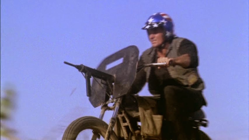 « The losers/ Nams Angels » (1970) (Les machines du Diables, en France) de Jack Starret constitue l’aboutissement ultime de la violence: la guerre. Le film narre la mission conduite par des motards hors la loi militarisés ( Et par ailleurs anciens mlitaires eux-mêmes) au Vietnam. Il convient de rappeler à ce propos qu’à l’époque (1970, donc.) le conflit américano-vietnamien faisait encore rage. Pour l’anecdote, dans la réalité, Sonny Barger, figure de proue de Hells angels avait proposé les services de son club au gouvernement américain. Soit, Barger avait été soldat, mais quand même…