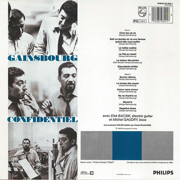 « Confidentiel » n’est pas le plus célèbre opus de Gainsbourg, ni le plus célébré, y compris dans cette période 1960/1963 dans laquelle beaucoup préfèrent « Percussions » Néanmoins, « Confidentiel » égale et même surpasse en un sens son prédécesseur. Il est certes moins original, mais il est plus émouvant, teinté d’une poésie élégante dans les mélodies comme dans les textes. Un grand disque, à redécouvrir. Pour la petite histoire, le guitariste présent sur l’album Elek Bacsik co-écrivit l’un des titres et dut le rappeler à Gainsbourg qui avait oublié de le payer. (?????) Sacré Serge!