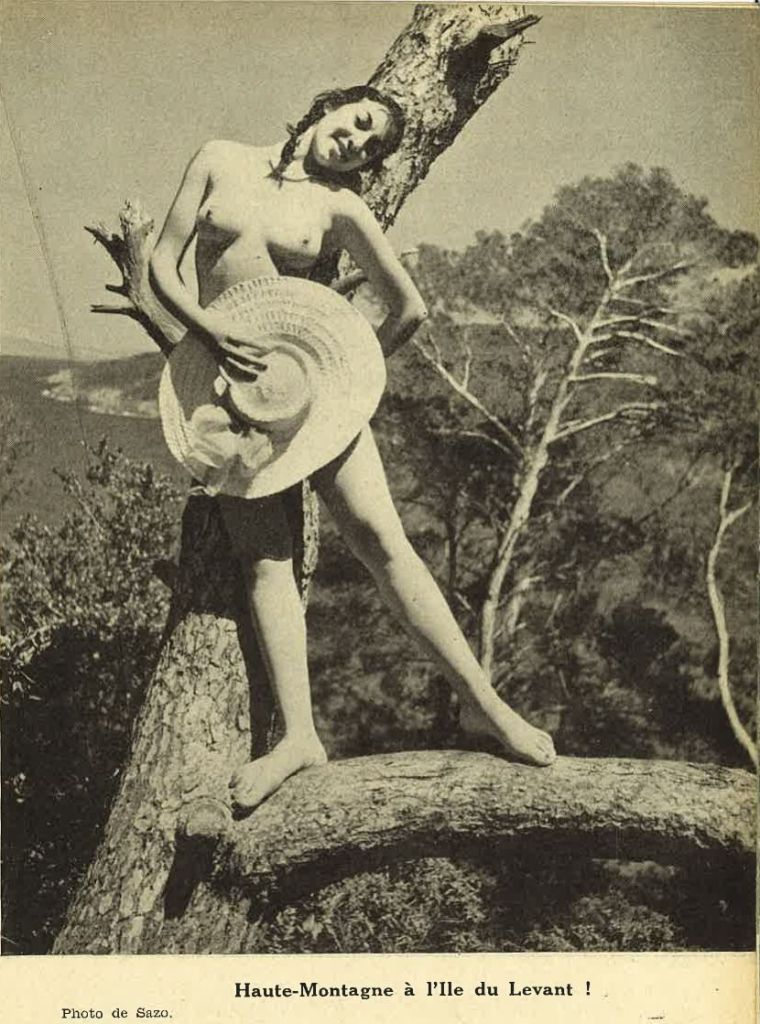 Le cadre de ce billet, sera circonscrit aux années 50, l’âge d’or de la revue « Naturisme » et de Héliopolis, cité idéale de la nudité situé sur la désormais mythique île du Levant ( Elle fit d’ailleurs l’objet d’un documentaire et inspira Célesteville à Jean de Brunhof, créateur de Babar) etqui accueillit de nombreuses gloires littéraires, musicales et cinématographiques de l’époque. Dont certaines furent très impliquées dans ce mode de vie, notamment Guy Béart.