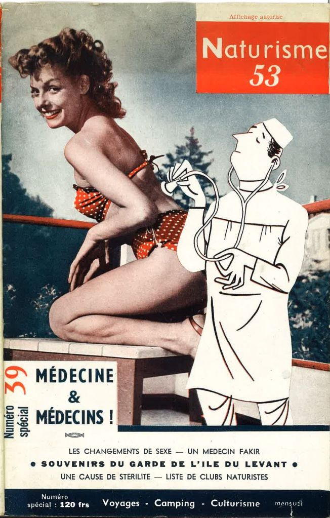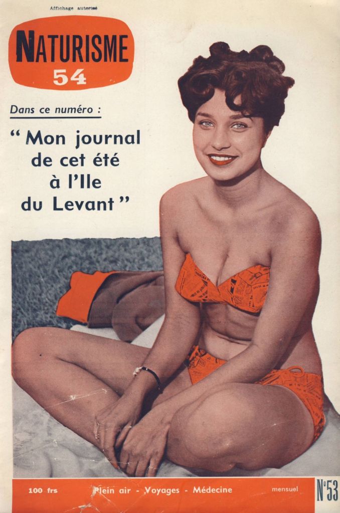 Le titre de ce blog étant « France rétro pop » (Et aussi France rétro polar), il va de soi que le naturisme dont il sera question ici est celui du milieu de siècle français, période qui, vous ne l’ignorez pas, me passionne. Mais il y a une autre raison à ce choix. Le naturisme a une longue histoire, des branches très diverses et parfois surprenantes, il a déjà fait l’objet d’études souvent excellentes, je n’aurais donc pas l’envie et encore moins la prétention de faire mieux.