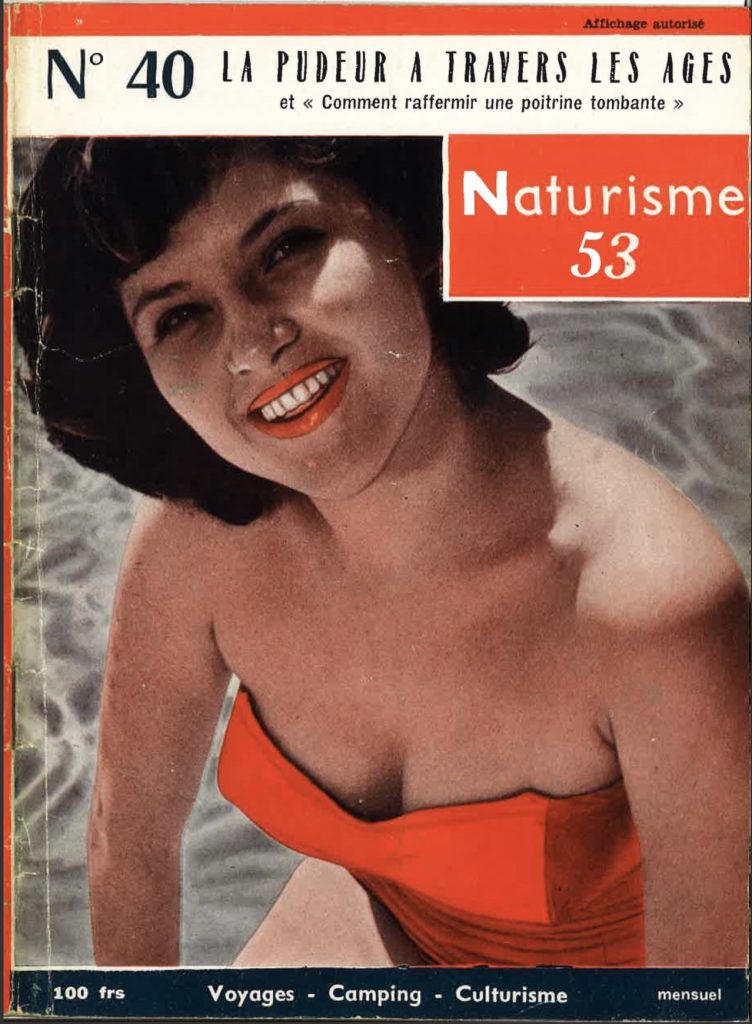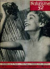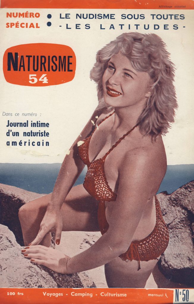 Quelques numéros de « Naturisme ». Il est intéressant de noter la variété des sujets qu’elle abordait, culturisme; voyage, transsexualité, ou contrôle des naissances. Ainsi, il ne s’agissait pas que de balader à poil!