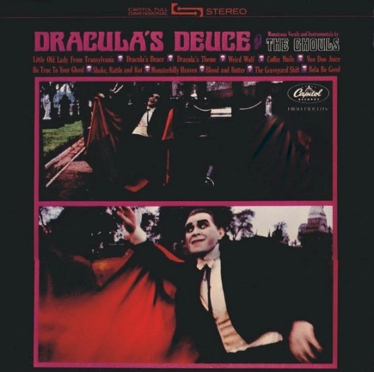 John Zacherle (1918-2016) fut un hôte télévisuel très populaire au cours des années 50/60, il sortit quelques disques de Novelties centrés sur des thèmes macabres, dont le plus connu reste « Dinner with Drac » en 1958, qui devint un classique mineur du Rock’n’Roll.